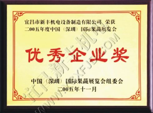 國際果蔬博覽會優(yōu)秀企業(yè)獎