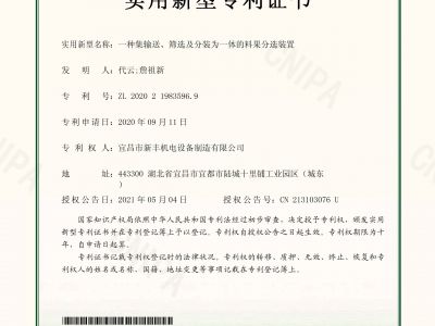 實(shí)用新型專利證書《一種料果分級用高效輸送并返料裝置》