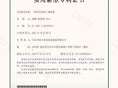 實(shí)用新型專利證書《一種均勻加熱干燥裝置》