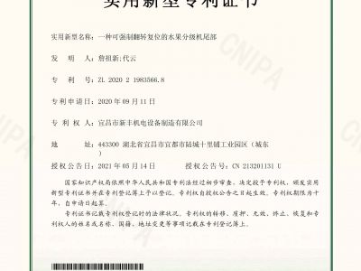 實(shí)用新型專利證書《一種可強(qiáng)制翻轉(zhuǎn)復(fù)位的水果分級機(jī)尾部》