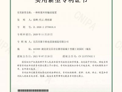實(shí)用新型專利證書《一種料果環(huán)形輸送裝置》