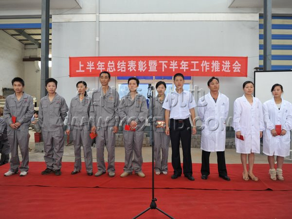 會議由公司黨支部第一書記胡興明主持,全體員工觀看了公司黨支部書記、董事長張本新參加全市優秀共產黨員先進事跡報告會的報告錄像,通報了受上級表彰的情況,為獲得公司第一季度和第二季度工人先鋒崗、巾幗示范崗、青年文明號的獲獎者頒發了獎金和獎牌。