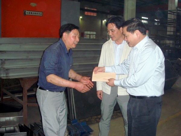 4月23日下午,宜昌市委常委、市總工會主席劉學甫在宜都市委副書記、市長羅聯峰,市委常委、市委宣傳部長、市總工會主席王世斌的陪同下,到宜昌市新豐機電設備制造有限公司生產一線慰問困難職工陳鳳友,與他親切交談,詳細詢問了陳鳳友的身體情況、工作情況及家庭情況,送去慰問金500元。并代表湖北省總工會、宜昌市總工會到生產一線為職工贈送“關愛箱”。